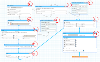 Some time ago I added a top commenter widget to the blog, based on a tip from Blogger Buster. However it started acting up, so I decided to roll my own using Yahoo Pipes!. Below you will find a short tutorial on how to do it, as well as the ready-made pipe, based on the idea that “if you teach a man how to fish…”.